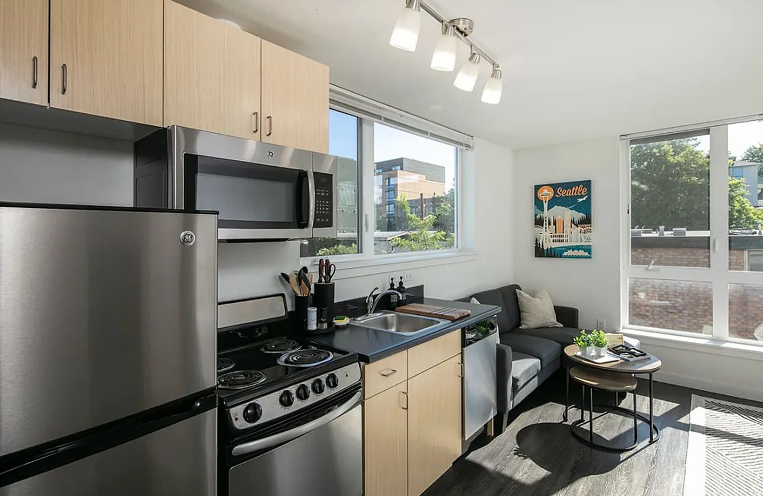 Commuting is simple with excellent public transportation nearby, including the U District Station, providing quick connections to Downtown Seattle, Capitol Hill, and Northgate. Major bus lines and bike routes also make it easy to navigate the city without a car.